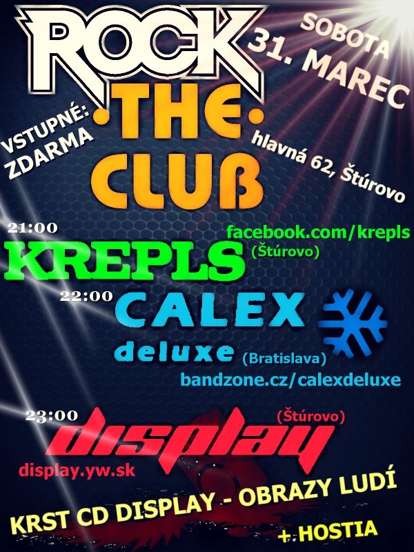 31.3. 2012 si zahráme s kapelami KREPLS (Štúrovo) a CALEX DELUXE (BA) v klube THE CLUB na hlavnej ulici v Štúrove.